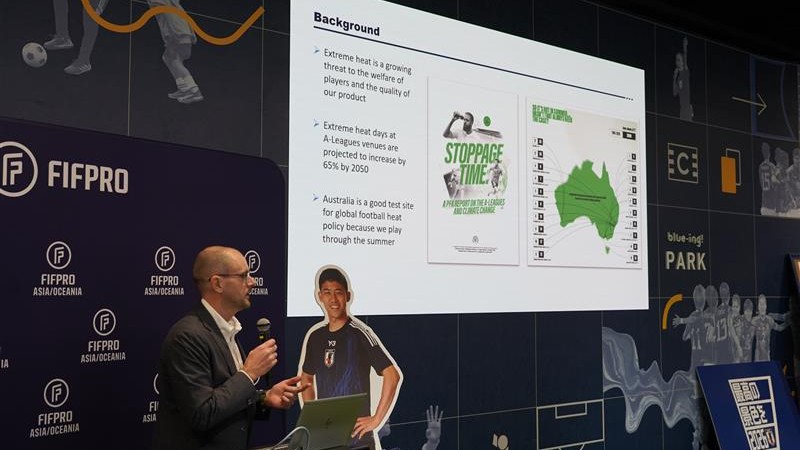Busch shared insights from Stoppage Time: A PFA Report on the A-Leagues and climate change, while representatives from JPFA explained the rationale of moving the J.League out of the summer months to manage heat and align with the European football calendar.